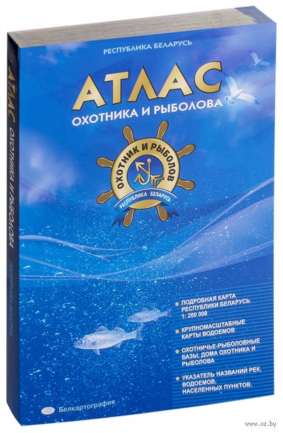 Атлас включает подробную карту Республики Беларусь масштаба 1:200 000, крупномасштабные карты водоемов, охотничьи-рыболовные базы, дома охотника и рыболова, а также указатели названий рек, водоемов, населенных пунктов.