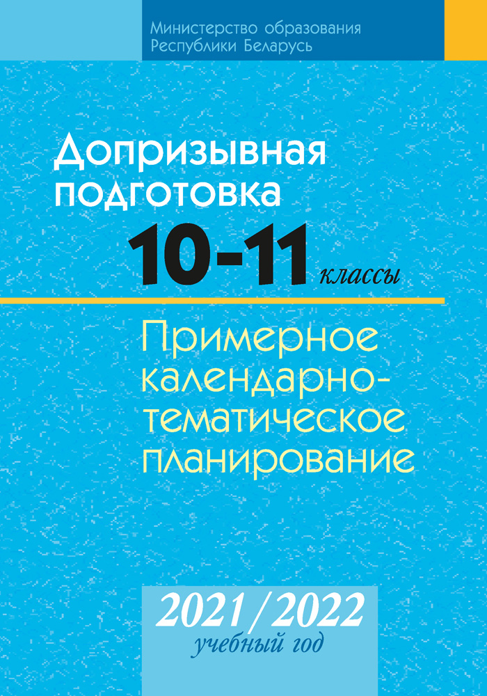 Примерное календарно-тематическое планирование учебного материала по учебному предмету «Допризывная подготовка» предназначено для учителей учреждений общего среднего образования и составлено на основании программы для 10—11 классов учреждений общего среднего образования из расчета 100 учебных часов: по 35 часов соответственно в 10 и 11 классах и 30 часов — при проведении учебно-полевого сбора.